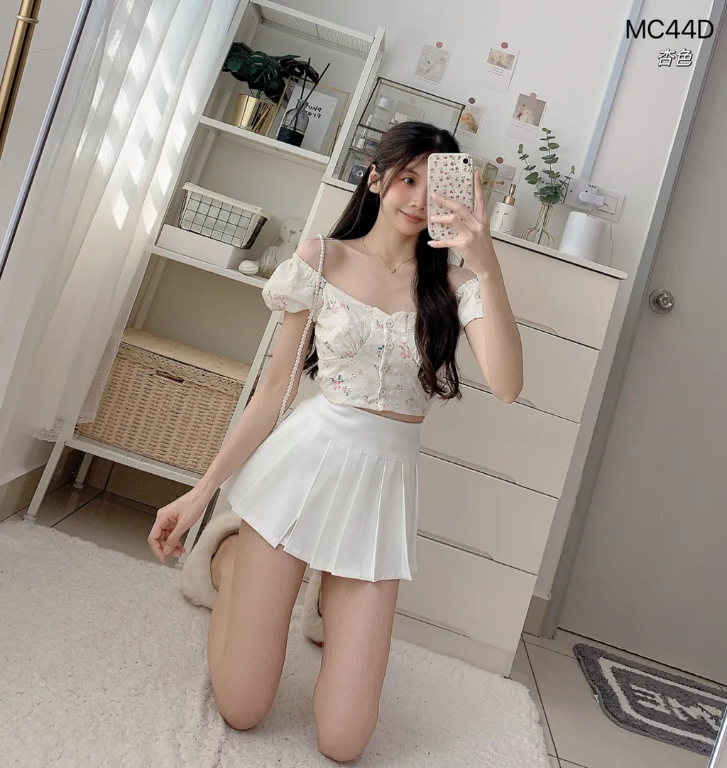 MC44D 小碎花泡泡袖上衣
